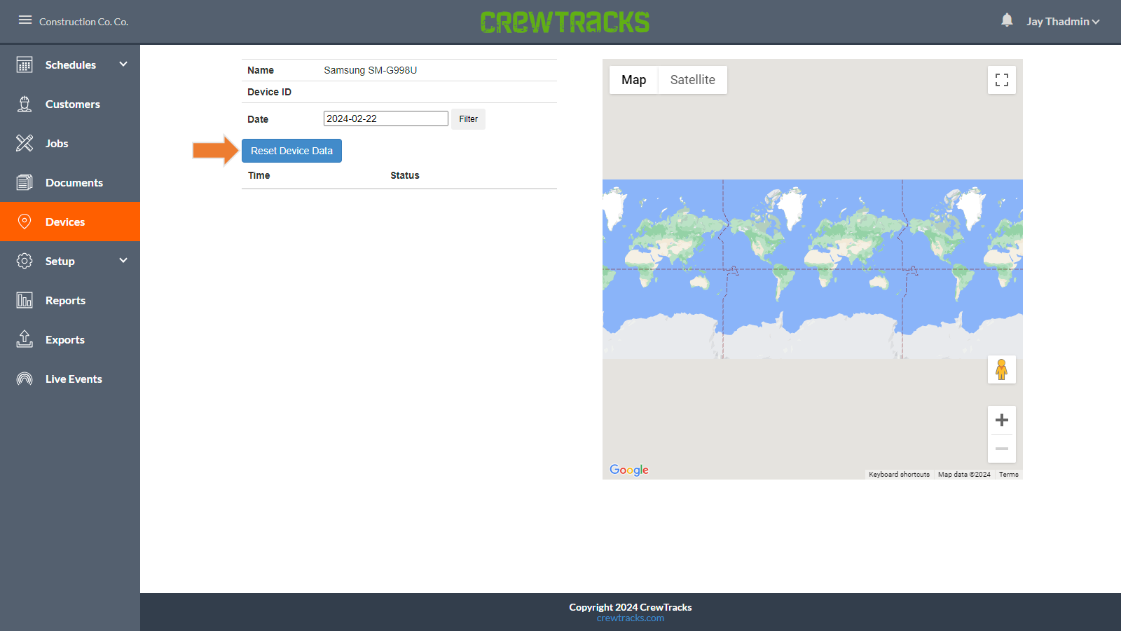 Click the Reset Device Data button. This will clear out old CrewTracks data on the device, download a fresh copy of data from the CrewTracks servers, then reapply any unsynced changes that haven’t been sent to the CrewTracks servers. This does not reset any location data on the device.