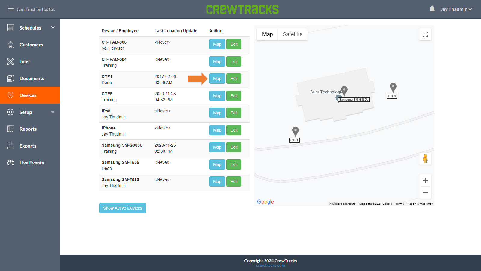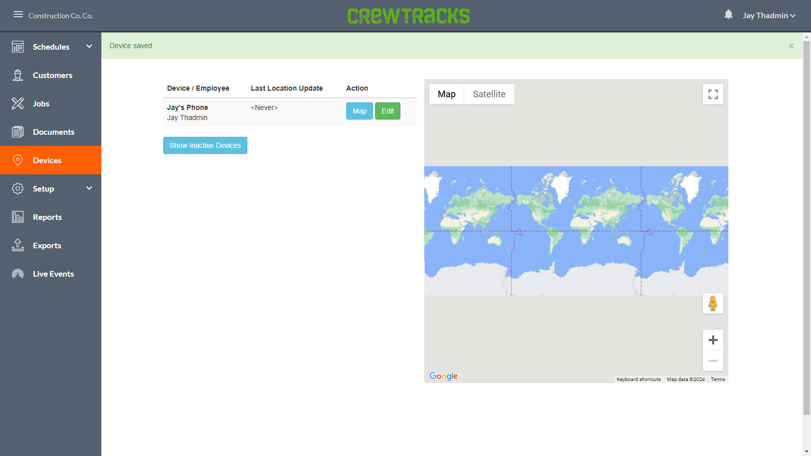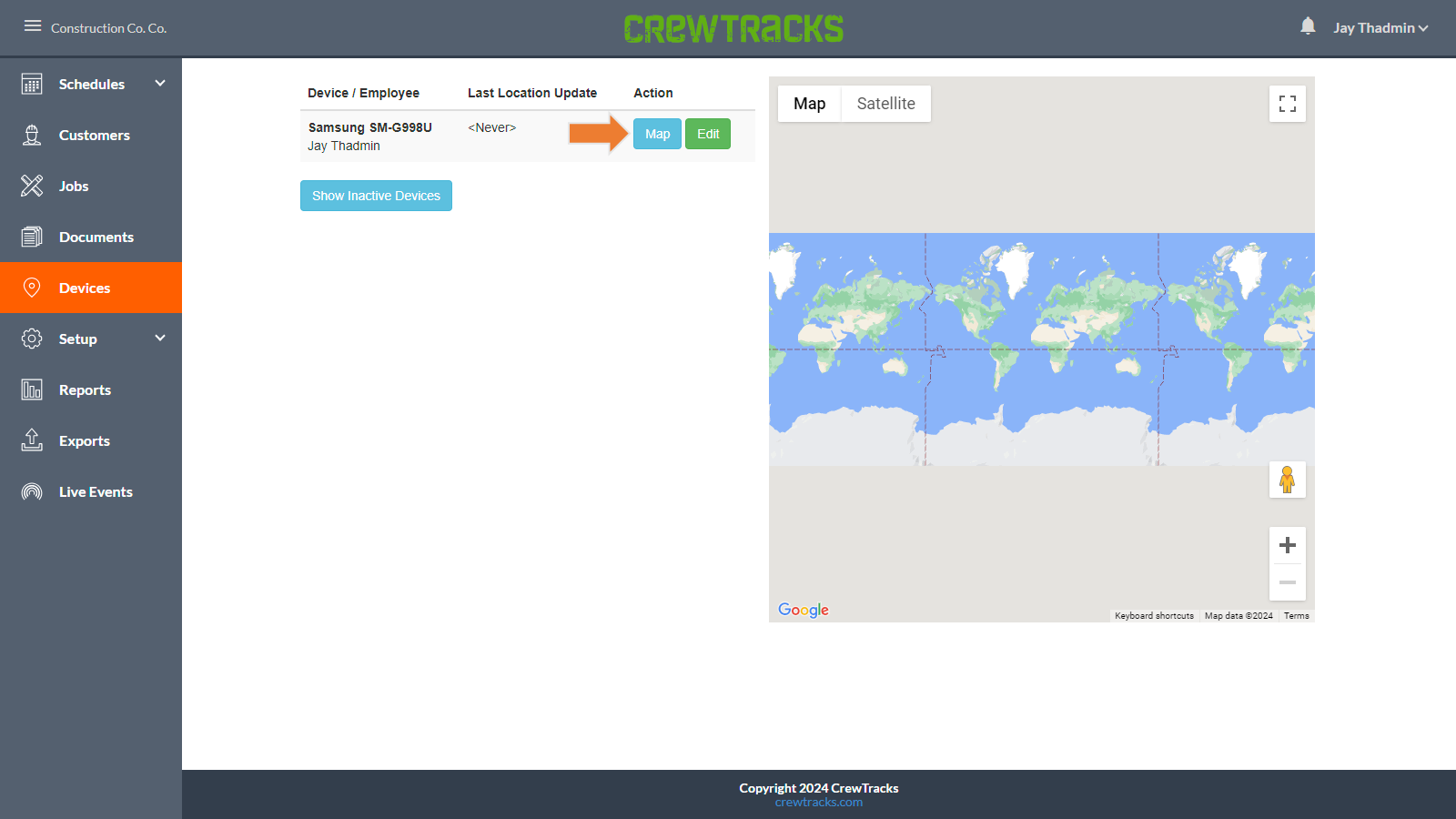 Click on Map next to the device to view that device’s map history.