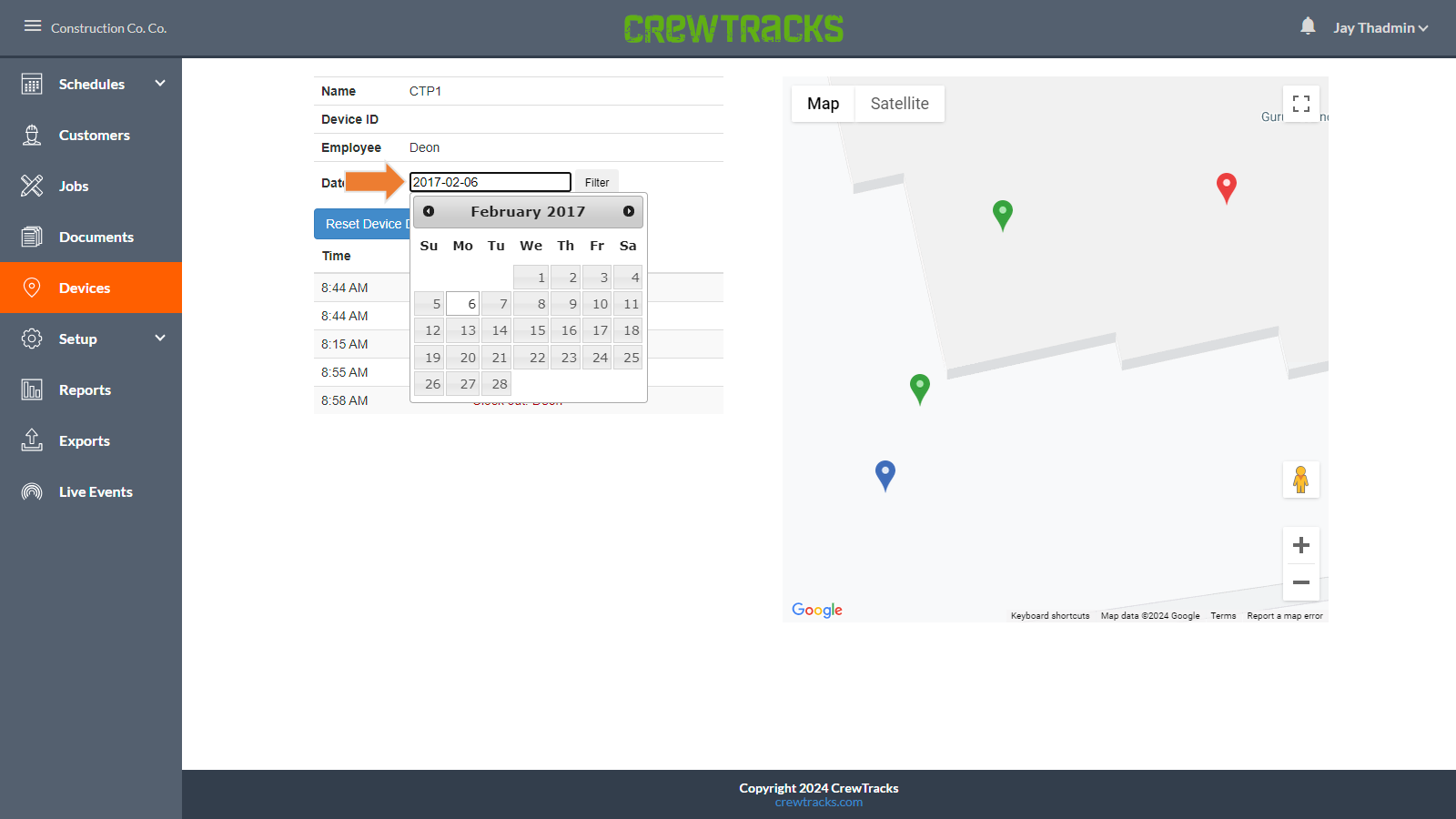 To view a different day’s map data, click on the date field to open a calendar. Select a date from the calendar.